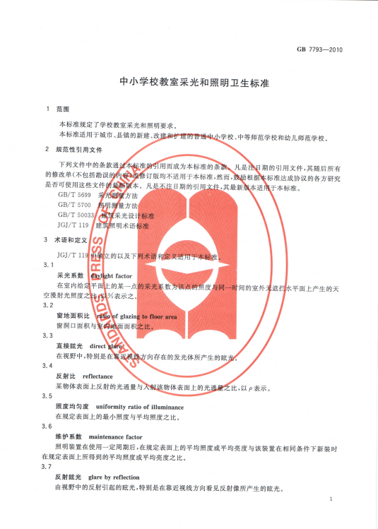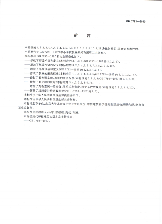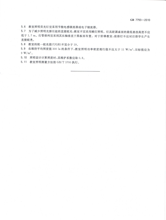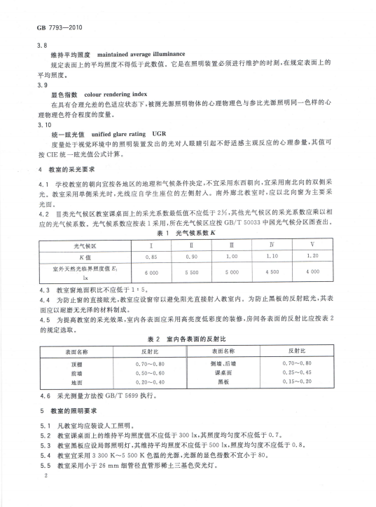 — 中小學教室采光和照明衛(wèi)生標準 —