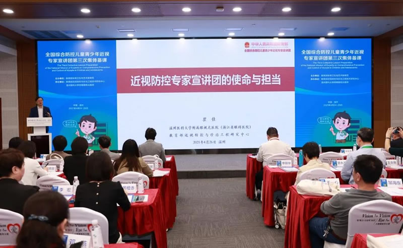為落實(shí)全國(guó)綜合防控兒童青少年近視工作聯(lián)席會(huì)議機(jī)制第三次會(huì)議和全國(guó)綜合防控兒童青少年近視暨學(xué)校衛(wèi)生與健康教育工作現(xiàn)場(chǎng)會(huì)部署,切實(shí)發(fā)揮全國(guó)綜合防控兒童青少年近視專家宣講團(tuán)專業(yè)引領(lǐng)、政策推廣、科普宣教作用,做好疫情防控常態(tài)化下近視防控工作。4月25日,80余位全國(guó)綜合防控兒童青少年近視專家宣講團(tuán)專家在溫州醫(yī)科大學(xué)舉行第三次集體備課,研討下階段宣講素材,交流各地近視防控宣講工作有益經(jīng)驗(yàn),調(diào)研近視防控“溫州模式”。