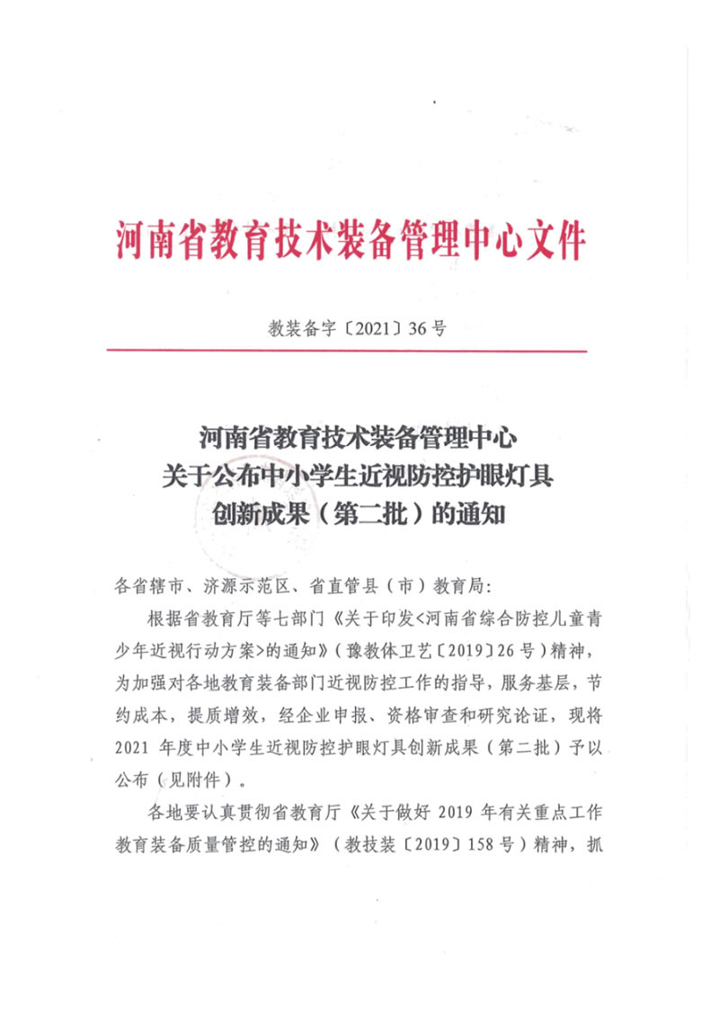 — 關(guān)于公布中小學(xué)生近視防控護(hù)眼燈具創(chuàng)新成果的通知 —