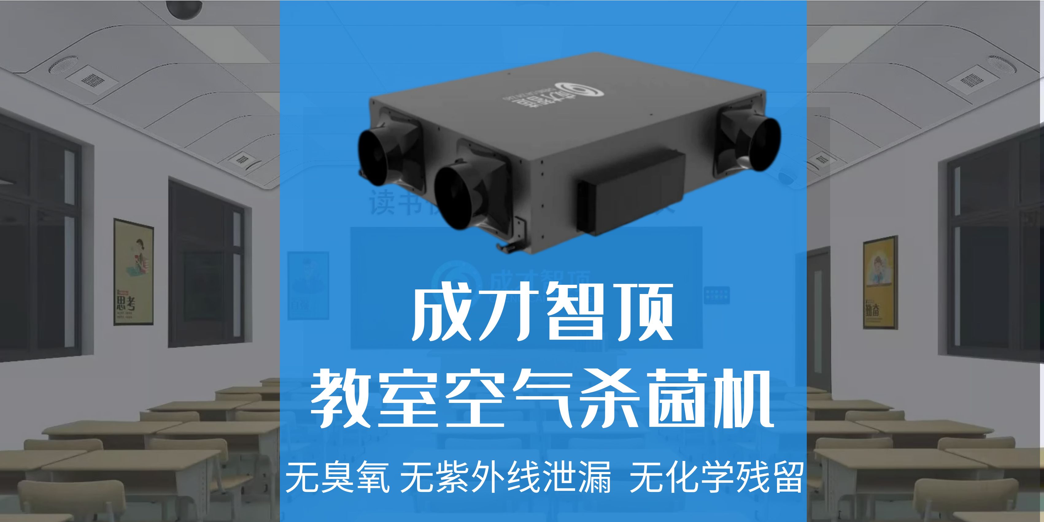 成才智頂中的空氣殺菌機(jī)采用光等離子簇消毒殺菌的技術(shù),可實(shí)現(xiàn)人機(jī)共存消毒的效果,在有人的環(huán)境中使用對(duì)人體無(wú)危害,有效防止師生密集交叉感染。